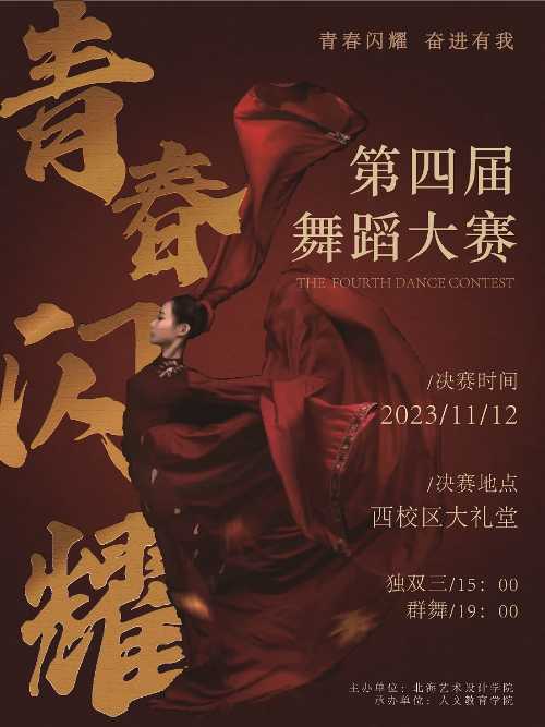 为进一步展示我校大学生的青春风采,激发大学生创新意识和创作能力,在优秀舞蹈作品中讲好故事、表好品质、绽放青春朝气,经研究,决定举办北海艺术设计学院第四届“青春闪耀 奋进有我”校园舞蹈大赛决赛!