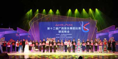 颁奖晚会当晚,遴选了歌曲《唱得花开妹就来》、歌曲《好日子歌里过》、民乐五重奏《骆越欢歌》、群舞《茶箩娘》、群舞《炮龙小子》等优秀节目参加颁奖晚会演出,充分展示了近年来广西音乐舞蹈艺术创作的丰硕成果。晚会还通过视频直播让广大群众一饱眼福,近距离感受这一场精彩纷呈的视听盛宴。第十二届广西音乐舞蹈比赛在现场观众的热烈掌声中圆满收官!
