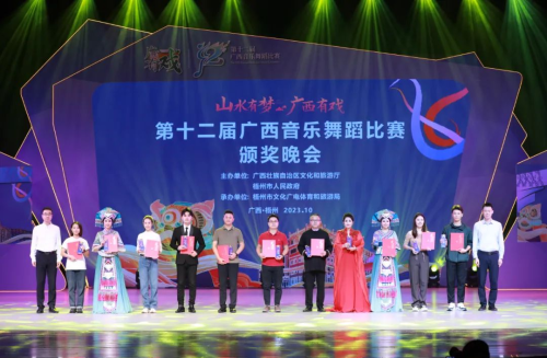 10月13日,由广西壮族自治区文化和旅游厅、梧州市政府主办,梧州市文化广电体育和旅游局承办的第十二届广西音乐舞蹈比赛颁奖晚会在梧州市文化展览中心举行。自治区文化和旅游厅副厅长郑艺,梧州市委常委、常务副市长汪东明等领导、嘉宾出席活动并为获奖代表颁奖。