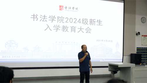 会上,苏乃从院长首先对2024级新生的到来表示热烈的欢迎和衷心的祝贺。随后,黎东明院长对新生做了主旨讲话。教研室主任李鑫对书法学院的建设与发展进行简要介绍,教务处主任熊东介绍书法专业的教学科目设置、学习目标以及毕业要求等,学工处主任李家琪则对新生们做了心理健康教育、安全教育,介绍了学校的各项规章制度等。