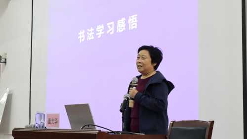 在讲座中,唐光华女士凭借其深厚的书法造诣和独到的艺术见解,同时结合自己的书法学习和创作经历,深入浅出地为师生分享书法艺术魅力和学习书法的心得体会。