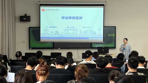 此次宣讲重点提醒学生们检查当前已修学分,确保在毕业前完成应修学分。熊老师特别强调,学生们应当根据自己的学习进度,合理规划剩余课程的学习时间,避免因为学分不足而影响到正常毕业。同时,鼓励学生们积极与教务办公室沟通,及时反馈学习中遇到的问题,以便学院能够及时给予帮助和支持。通过此次宣讲,2022级的学生们对毕业审核的要求有了更清晰的认识,也为他们顺利毕业奠定了坚实的基础。(李鑫 摄)