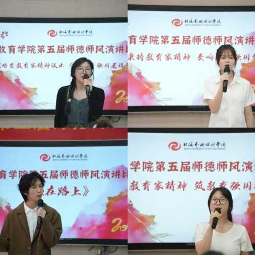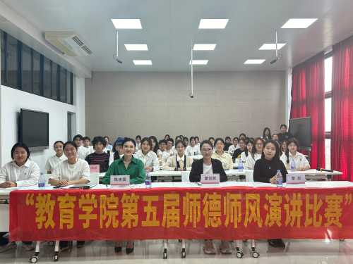 为大力弘扬教育家精神,积极营造尊师重教的良好氛围,引领学生勇担国家责任与弘道使命,自觉锤炼道德品质、塑造理想人格,树立以教育为终身服务的坚定志向,不断提升育人智慧,为教育强国建设贡献青春力量,教育学院于2025 年4月14日—17日,在图书馆五楼智慧教室隆重举办了第五届师德师风演讲比赛。