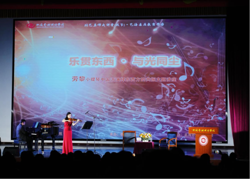 2025 年 5 月 9 日晚,北海艺术设计学院为深化美育教育实践、提升学生的艺术修养,特邀请到国际乐坛备受瞩目的中国小提琴演奏家、中央音乐学院管弦系劳黎老师,以 “乐贯东西・与光同尘” 为主题,用灵动的琴弦编织出跨越国界的艺术对话。北海艺术设计学院校长卢新华、副校长包建明、总督学王斌、纪委书记王照伟、教育学院院长熊秀峰、副院长蒙剑英等领导出席了本次活动。同时,本次活动受到了北海市文艺界与教育界的广泛关注,北海市音乐家协会主席林海等众多社会各界的音乐爱好人士莅临活动现场。