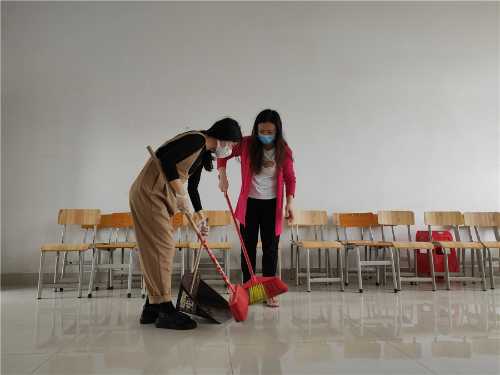 5月1日至2日,学校统筹安排各部门对照疫情防控卫生标准,对东西校区的教学楼、办公楼、宿舍区、图书馆、实训室、工作室、食堂、绿化区等公共区域开展卫生死角清洁工作,并对照防控要求规范教室桌椅摆放及室内防疫标识的张贴。经过全校教职工两天的努力,门窗、风扇、墙面、栏杆、地面擦拖干净,布置美观,物品摆放整齐,校园环境整洁一新。