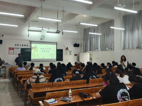 会上,汉语言文学教研室主任蔡森介绍了人文教育学院的发展历程与教师队伍,详细解读了本专业的发展特色、培养目标、核心课程、社会实践活动与就业前景,从专业所涉的各个方面为新生答疑解惑,使学生明白汉语言文学专业的课程体系和培养目标,以便学生对大学生涯进行合理规划。