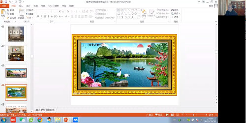 随后,丁密金教授提到室内设计中视觉感官十分的重要,在视觉感官上我们要追求唯美至上,赏心悦目。丁教授又强调在选择绘画作品时要与空间的整体高度统一,并且要与家具、陈设完美搭配,画种的类型与空间设计风格及功能相对应,画面图形应与室内陈设物件形态适度契合,画面色彩与空间的整体色调巧妙搭配,挂画位置、视觉尺度选择合理。