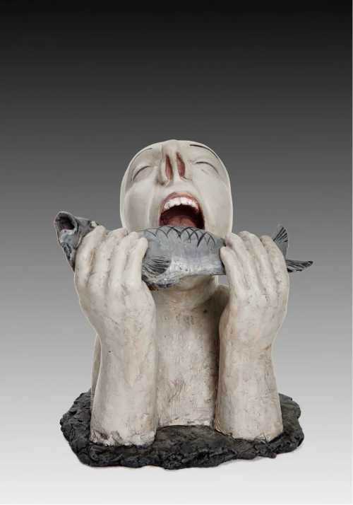 《进食的人》· 32×33×43cm·玻璃钢着色·2010年