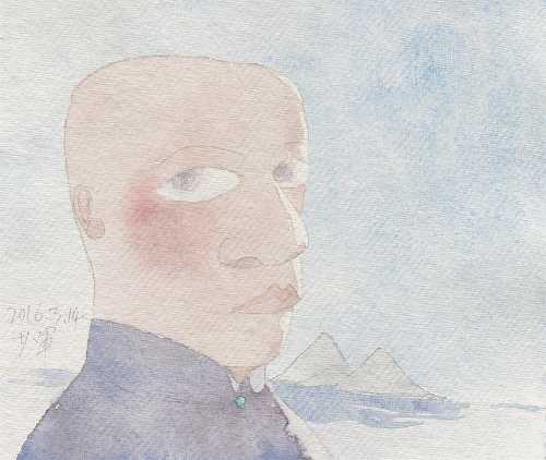 《妙子常常看着窗外公园草坪上的那块石碑》·21x20cm· 水彩· 2016年