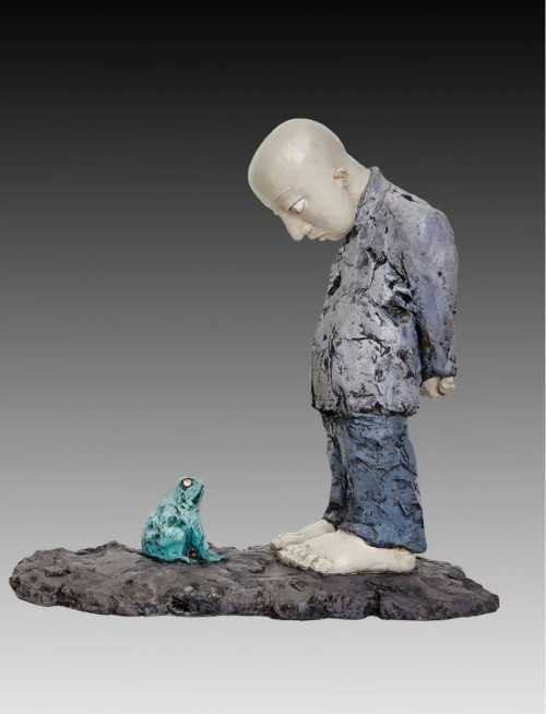 《人与蛙》·54×28×55cm ·玻璃钢着色· 2011年