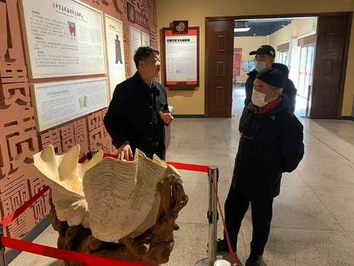 在博物馆参观调研时,王教授认真听取林雄对北海贝雕近十年的发展历程的介绍,王教授对博物馆内的藏品很感兴趣,仔细了解藏品的来历的同时,对藏品保护提出了宝贵意见,对贝雕工艺巧夺天工的自然之美,赞不绝口。