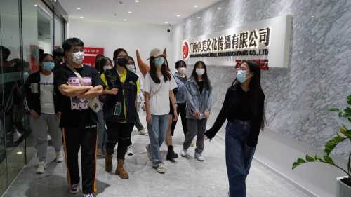 师生在卓美文化公司负责人的带领下参观企业工作环境,了解公司业务