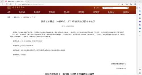 国家艺术基金管理中心3月3日发布《国家艺术基金(一般项目)2023年度资助项目名单公示》,我校美术学院教师陈建江,获青年艺术创作人才项目(中国画创作)立项,也是我校唯一在获得此类立项的项目。