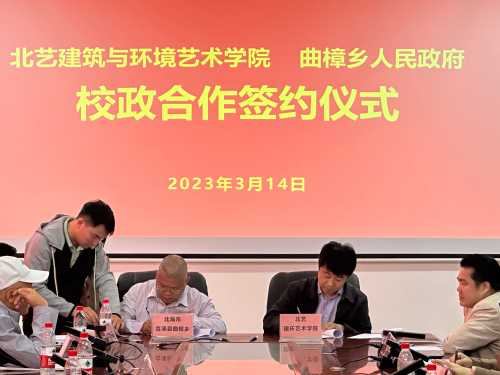 曲樟乡党委书记李建龙对我校成员的到来表示热烈欢迎。本次会议是继3月14日在北海艺术设计学院举行校政合作签约仪式之后,北艺建筑与环境艺术学院与曲樟乡人民政府“校政合作”深化的重要内容。
