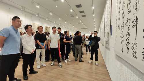 书法教研室此次活动筹备充分、秩序井然,学生学习氛围浓厚、情绪高涨。学生在观展中能够为今后的专业创作积累素材,打下基础,提高了书法审美拓宽眼界,激发自身对专业学习的热情,提高了对书法艺术的热爱程度。(许荣军 摄)