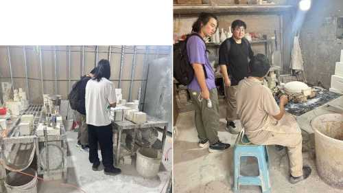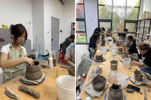 在当地艺术家的指导下,学生进行陶瓷雕塑实践练习