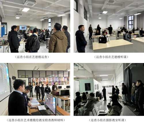 2025年2月10日,美术学院开展了期初教学巡查工作。由校级和院级教学督导组成的巡查小组,对开学第一周的教学情况进行了全面检查。巡查小组先后走访了艺德楼和艺术楼的专业课教室,详细检查了教师授课、学生听课情况以及教学设施设备的运行情况。