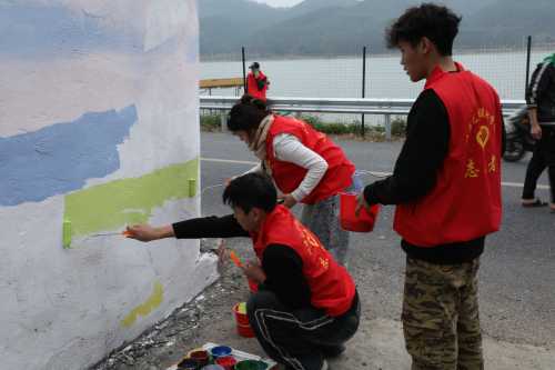井山村小洱海墙绘学生绘制图