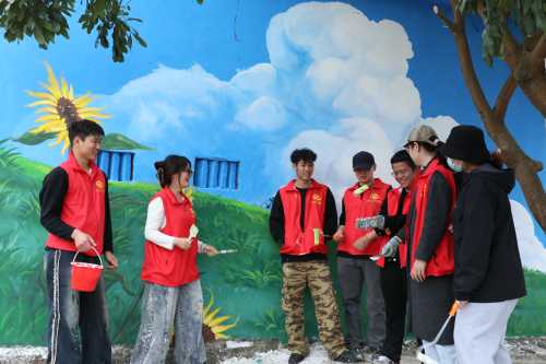 前期在创作过程中,师生团队深入挖掘井山村的历史文化底蕴,将红色革命故事、农耕生活的智慧与勤劳、以及生态旅游的绿色发展理念巧妙融入墙绘之中。每一幅作品都承载着对乡村文化的深刻理解与尊重,同时也展现了现代艺术对传统文化的创新诠释。