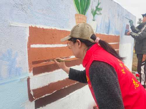 井山村“小洱海”墙绘项目以“红色文化”“农耕文明”“生态旅游”等为主题,30余名师生从调研、设计、实施总计耗时3个月,在五百平方米墙面上创作《红色文化》《渔耕四季》《柿柿如意》等系列作品,将当地特色文化、田园风光转化为可互动的视觉符号,打造“一步一景”的沉浸式乡村文旅体验,验收现场,庞丽副乡长表示:“墙绘不仅扮靓了村容村貌,更让村民在艺术熏陶中增强了文化自信。”