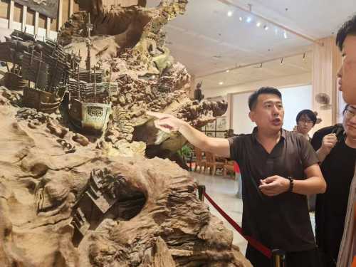 随后,广西工艺美术大师杨峻带领学生们领略木雕艺术的魅力。杨峻老师设 计创作的根雕艺术作品深受好评,其代表作《珠还合浦》《合掌观音》等曾获“八 桂天工奖 ”金奖。他向学生们展示了木雕从选材到成品的全过程,介绍不同木材 的特性以及适合创作的题材。同学们看到了各种风格的木雕作品,有的气势恢宏, 有的细腻入微,感受到木雕艺术独特的表现力。