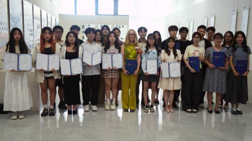 开幕式上,佩奇大学工程与信息技术学院建筑视觉系副教授艾瑞卡首先表达了对北海艺术设计学院的感谢,在此次授课和生活中感受到了学院的热情与周到,感受到了更多的中国文化。随后,她分享了在授课过程中与学生们交流的愉快经历,对学生的努力和热情给予了高度评价。同时表示,随着两校交流经验的增加,希望在今后的学术交流与课程教学中取得更丰富的成果。最后,她再次表达了对学院领导以及老师的感谢,并期待下一次的交流与课程合作。