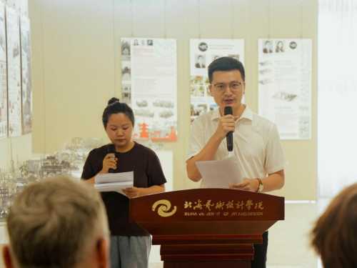 建筑与环境艺术学院院长张春东对出席开幕式的领导和嘉宾表示热烈欢迎,他回顾了北海艺术设计学院与佩奇大学自2017年以来的合作历程,介绍了此次展览的基本概况。他强调,此次短期课程不仅使学生学习到了先进的设计理念,还增进了对不同文化的了解。他表示,希望通过两校合作与交流,能够培养出更多眼界开阔、具有国际视野的设计人才,推动建筑与环境设计领域的发展,同时也希望学院在未来继续努力,为学生们提供更多的学习机会和更优质的交流平台。