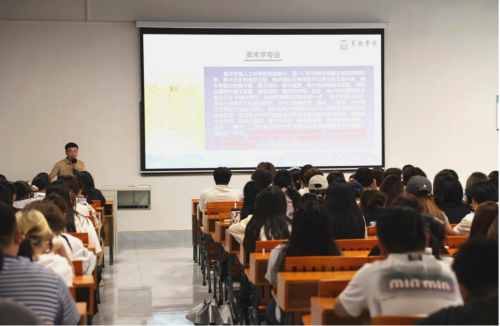 介绍会上,陈建江副院长从学科历史、课程体系、师资力量和就业前景等方面,全面阐述了美术学专业的特色与优势。他强调,美术学专业注重理论与实践相结合,积极跟进数字艺术学科前沿,致力于培养具有创新精神和实用型的艺术人才。陈院长还通过往届优秀学生竞赛成果案例,生动展示了专业的发展成果,鼓励新生夯实基础、拓展视野,积极参与艺术实践。