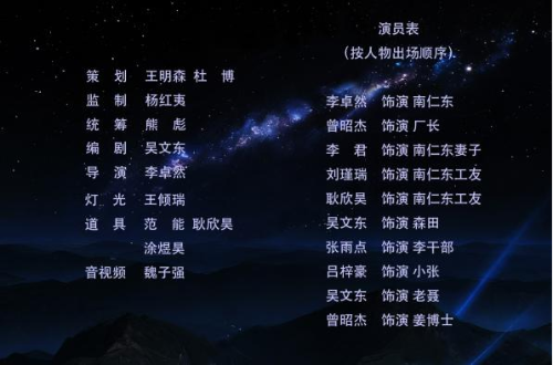 传媒艺术学院长期致力于科普教育创新实践,依托艺术与传媒专业融合的独特优势,持续探索“艺术+传媒”科普新模式。舞台剧《星海长眸》以“时代楷模”“人民科学家”南仁东先生为原型,聚焦其倾力打造“中国天眼”FAST的感人历程,通过艺术化创作,生动诠释了南仁东先生科技报国、无私奉献的科学家精神,让观众在沉浸式观演中感受科研工作者的情怀与担当。