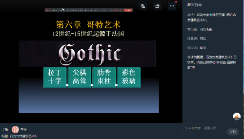 受疫情防控的影响,李莎教授采用线上直播形式为学生讲解西方古代建筑史内容,讲座主题涉及西方古典建筑发展的6个历史时期,包含古埃及、古希腊、古罗马、拜占庭、罗曼、哥特时期的建筑。讲座内容以时间发展序列和建筑风格的演变为主线,结合每个不同建筑历史时期的政治、经济等社会综合发展状况,阐述了不同建筑时期建筑风格产生的必然性及其建筑风格,使学生深刻理解建筑风格和特征的时代源头,做到知其然,也知其所以然。