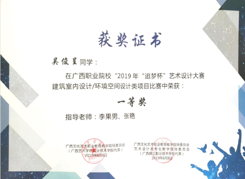 环境艺术学院在2019 年广西“追梦杯”艺术设计大赛中荣获佳绩