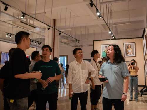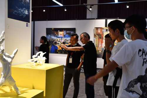开幕式结束后,由美术学院常务副院长龚为以及美术学院教师陪同各位校领导进行参观,同时校领导点评了展览作品并提出了很好的建议,对之后的教学方向有很好的帮助。(王云龙 摄)