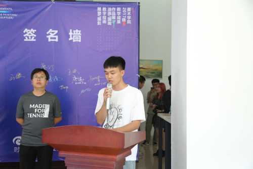 学生代表黄珍、蒋理、孙浩发言,他们回顾了初来北艺时的青涩、稚嫩,经历三年学习生活的紧张、彷徨、困惑、以及收获成功后的欣喜若狂。而今天的教学成果作品展展现的是他们三年所学,是同学和老师们共同努力的成果,同时感谢学校和老师的尊谆教诲、期以进步。