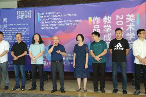2020年7月25日(星期六)下午四点半,美术学院2017级教学成果展在西校区图书馆一楼展厅隆重开幕,此次展览共展出绘画作品127件、摄影115件、雕塑62件。我校党委书记李高南,副校长张跃、胡胜、彭仁、王斌、邱杰等校领导以及各二级学院相关领导应邀出席开幕仪式。