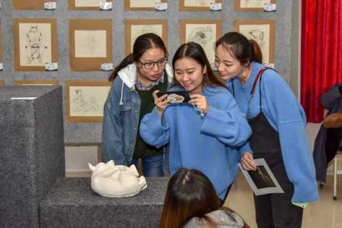 此次展览有老师和学生作品,其中作品除了有雕塑作品 还有一些绘画作品。进入展厅老师和学生的作品令我们惊叹, 在场的师生无不细细品酌每件作品的精妙之处,给我们带来 了一场视觉艺术上的饕餮盛宴。