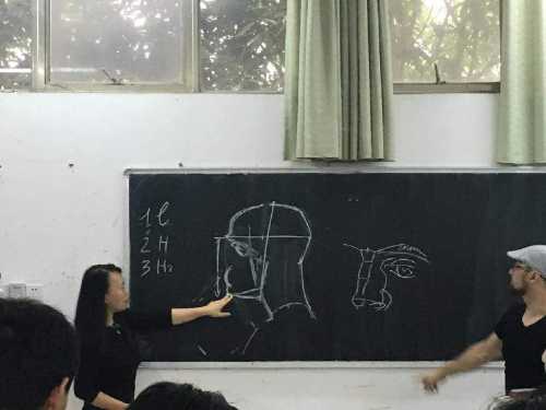 Nik-kit教授在示范的过程中会有重点的停顿,并且在黑板上标注出重要的部分。Nik-kit教授很注意讲解节奏,他会细心观察同学们的表情,发现有疑问的他就会停下来仔细分析。