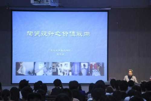 李教授还在大屏幕上展示了许多不同类型的陶艺设计,从古代传统的陶艺作品,到现代新型的陶艺技术。陶瓷艺术在造型、装饰、手法、形象上的转化演变,其呈现出的不同效果,让在座师生惊叹不止。