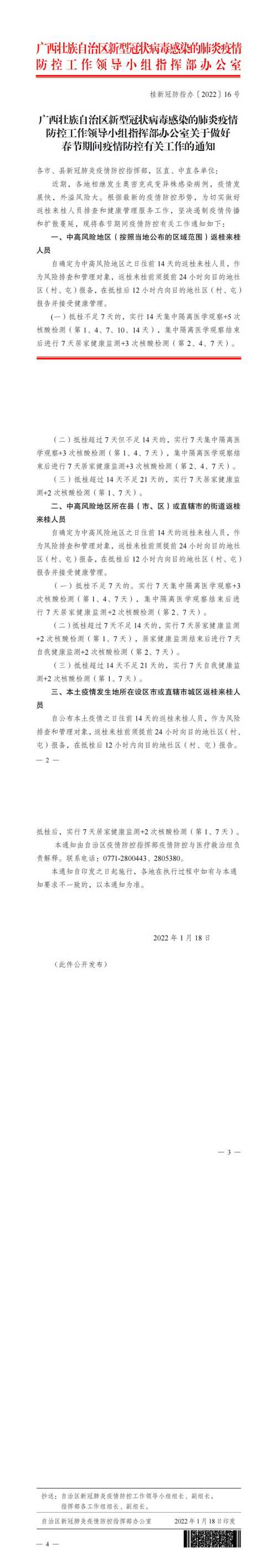(桂新冠防指办〔2022〕16号)关于做好春节期间疫情防控有关工作的通知
