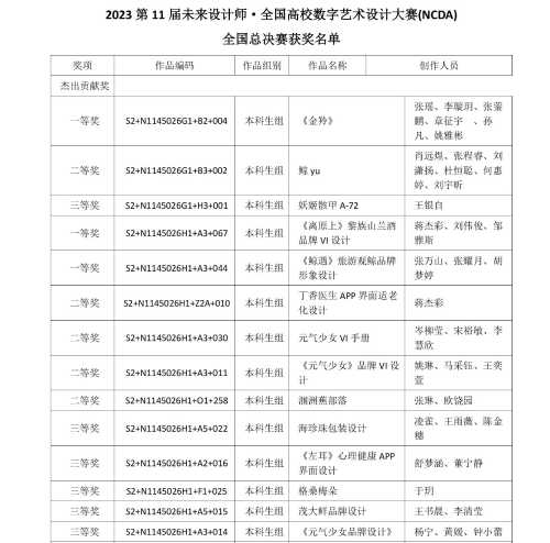 喜报 / 我院师生在2023第11届未来设计师·全国高校数字艺术设计大赛(NCDA)中喜获佳绩!