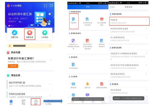 使用手机APP 端申报,您可以从以下入口进入年度汇算: 一是从首页的【常用业务】区块的【综合所得年度汇算】进入;二是从【快捷入口】-【我要办税】下或底部【办税】菜单进入后,点击在【税费申报】下的【综合所得年度汇算】。