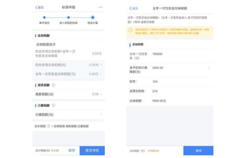 Ø 划重点:系统将自动计算按全年一次性奖金计税的应纳税额,您需要将按数月奖金申报的已缴税额,合并进全年已缴税额进行填写。
