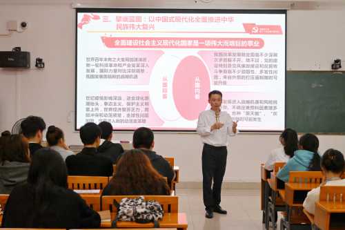 为深入学习贯彻党的二十大精神,切实推动党的二十大精神进课堂进教材进头脑,根据学校党委统一部署,3月8日晚19时30分,在公德楼112教室,学校党委委员刘承初为人文教育学院分团委的学生干部带来了一场题为《学习党的二十大精神,奋力开创新时代建设新局面》的宣讲会。