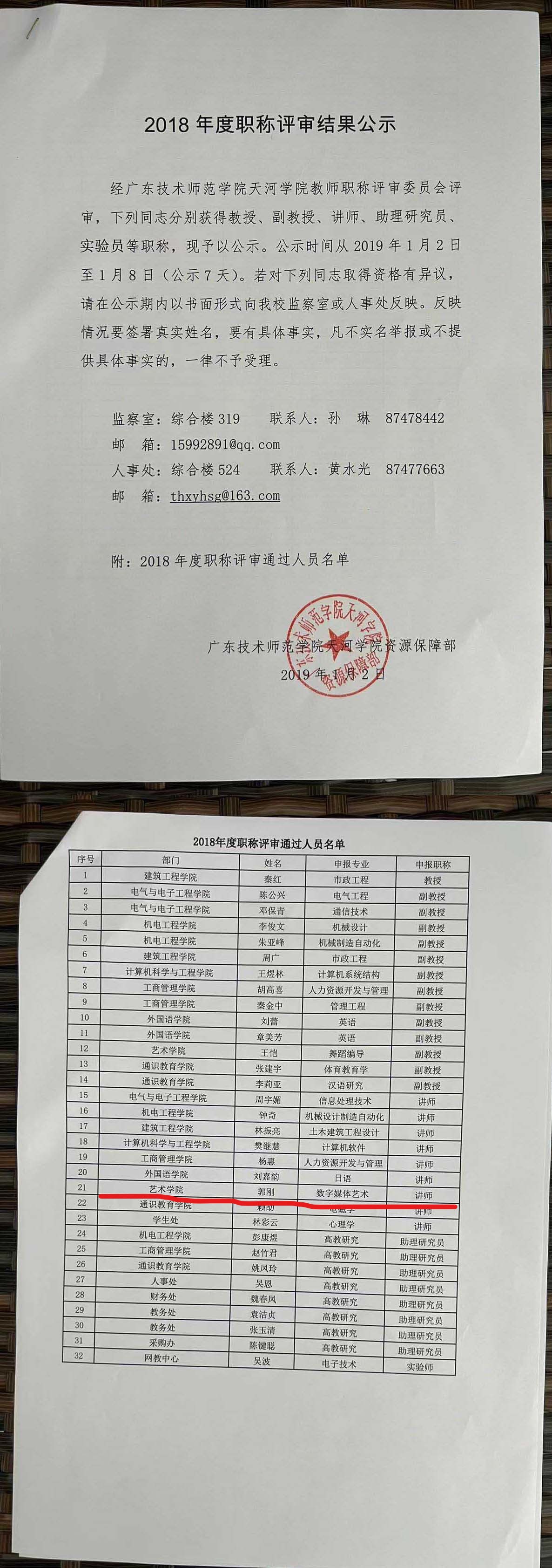 根据《广西壮族自治区申报专业技术职务资格公示暂行办法》(桂职办〔2000〕48号)规定,经我校职称改革工作领导小组办公室对郭刚重新确认讲师职称的专业技术职务评审表原件、任职资格证书批文、职称证书原件等申报材料进行核验,现将该同志职称重新确认的申报材料进行公示(申报材料可在学校人事处网站查阅),公示时间从2023年10月18日至10月25日,共7天。公示期间教职工如有异议,可书面(署本人真实姓名)向学校职改办反映,联系电话:0779-6870-866。群众如实反映有关问题受法律保护。