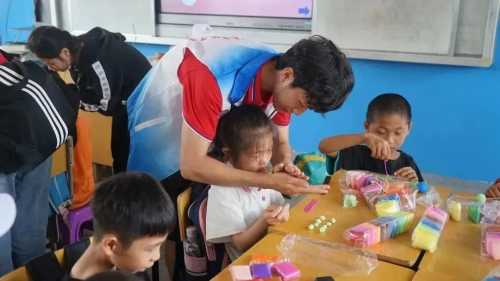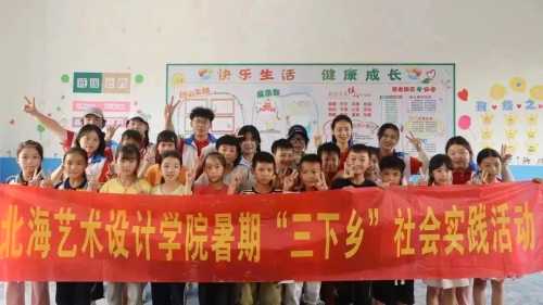 6月15日下午,北海艺术设计学院支教关爱服务团在北海市合浦县石湾镇小学开展手工、音乐、绘画、口才小课堂,乡村小学校园文化墙绘设计等活动。将自己所学专业知识技能教授给红锦村小学的同学们,让同学们学有所得,把艺术课程带进红锦村小学。