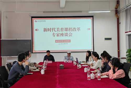 为了深入贯彻中共中央办公厅、国务院办公厅《关于全面加强和改进新时代学校美育工作的意见》,教育部《高等学校公共艺术课程指导纲要》,进一步完善我校美育课程体系建设,丰富美育课程内容,近日,通识教育学院美育教研室在图书馆508会议室召开新时代美育课程改革专家座谈会。清华大学美术学院教授、博士研究生导师、设计艺术学院名誉院长张夫也教授,湖北美术学院教授、硕士研究生导师、设计艺术学院外聘教授张昕教授莅临讲座指导。美育教研室全体教师参加座谈会。座谈会由我校“大美育”教学团队带头人刘静静老师主持。