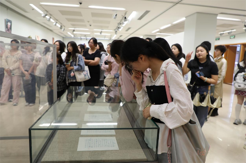 在长设现代文学展厅,师生参观了众多现代文学大家的著作、手稿、译本、日记、信札、藏书等文学档案资料,学生悉心感悟,全身心投入这场立体的现代文学课堂。透过珍贵的文物史料、深刻体悟新旧时代过渡时期作家的责任担当,置身于书影图文、手稿原件等珍贵的文学史文物之中,参观师生仿佛触摸到了活生生的文学史。