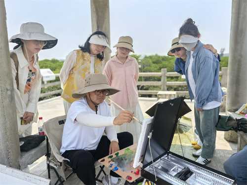 采风调研结束后,师生以红树林生态系统为灵感源泉,通过油画、速写、摄影等形式,将生态景观转化为艺术形象。作品中既有对红树林肌理质感的精细刻画,也有对潮汐律动的抽象呈现,生动诠释了“绿水青山就是金山银山”的美学内涵。