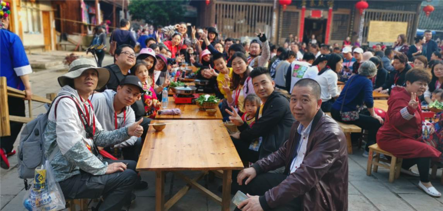 在三江,一行人还体验了侗族著名的“长桌宴”文化、侗族阿姐热情的祝酒敬酒礼仪、唱山歌、喝油茶等民俗文化活动,为后期动画片的场景、建筑、剧本创作提供了深刻的丰富素材。