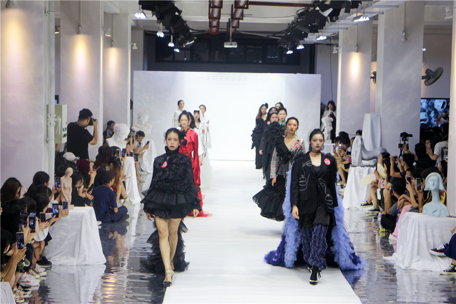 A:这次的专题设计其实对未来17级18级的学生们有很大的导向作用,我们这次的专题设计分为成衣,戏剧和高定三个方向,学生们可以通过各个方向的作品展来了解将来要选择的方向。鉴于上一个问题所说的各项能力的要求,也希望17级18级的同学们从一开始就学好基础课程,通常工艺和制版能力强的同学设计也不差,最后都能做出满意的作品,基础差的同学就算画出不错的设计稿,最后也很难实现自己的设计。