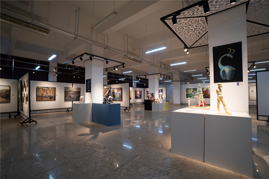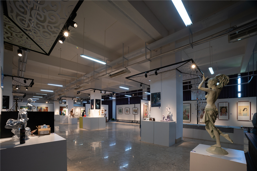 7月25日下午4:30,美术学院2017级教学成果展在西校区图书馆一楼展厅开幕。此次展览共展出绘画作品127件、摄影115件、雕塑62件。我校党委书记李高南,副校长张跃、胡胜、彭仁、王斌、邱杰等校领导以及各二级学院相关领导应邀出席开幕仪式。